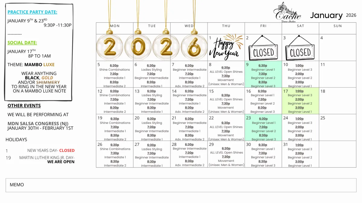January 2026 Class Schedule